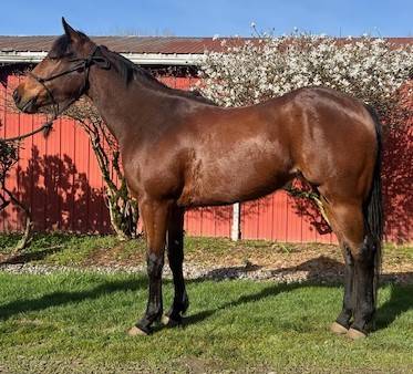 She’s had 4 months of professional training under saddle with all the solid basics (starting to neck rein, rollback, walk collected or on a loose rein, lovely trot and canter, ridden indoor and outdoor with one trail ride), she is pretty forward but very curious and friendly. Has been bathed, ties, hauls, exposed to motorcycles, heavy machinery, gunfire nearby, fireworks and race cars (most all kid activities).
