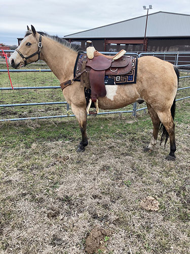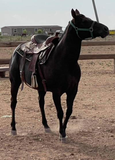She is said to be BOMB PROOF-anyone can ride her! She has much trail experience, parade rides,has been roped and ponied off of-never bred but had good repro exam.