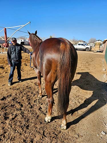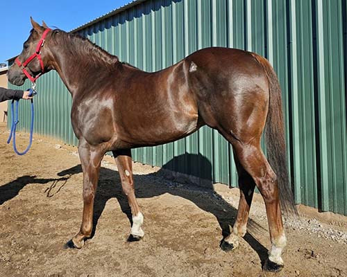 His 2nd dam is: QUEEN OF APPEALS- SI 99, by First Down Dash-QH. 3 wins at 2 and 3 in QH races, $83,988, Register of Merit, Charger Bar H., 2nd PCQHRA Breeders’ Futurity-G1, 3rd Independence Day H. [R], Finalist in Golden State Futurity-G1, Town Policy H.-G3, Vandy’s Flash H.-G3. She is also the dam of: