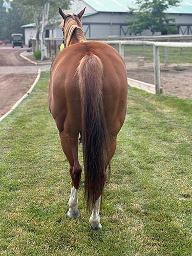 MISS HARLEY QUINN is a beautiful, 2016 AQHA mare by the Great, CHICKS BEDUINO from a Top stakes family! Hard to find a Chicks Beduino daughter this young! Her owners bred her only one time (in 2021) and she has a 2 year old currently in training by KVN CORONA to work for her future. She has been ridden in a round pen but that’s all. She’s very correct and is said to have a good disposition with no issues.